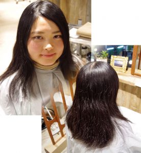 アイロン前にも植物オイルを塗布し、熱ダメージも軽減。薬剤のパワーが弱いのでそれを補う特殊なアイロン技法です。